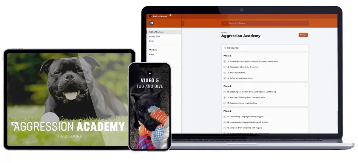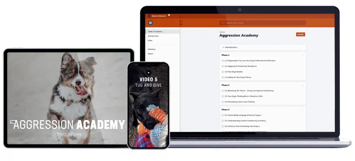 The Aggression Academy is an online video-based course that teaches you exactly how to fix your dog's aggression and reactivity step-by-step… in as little as 10 minutes a day.